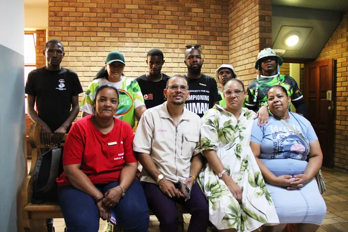 Representatives from the Shaine Griqua Advice and Development Centre, Justice4All and the PA’s GBVF desk, along with community members, support the bereaved family.