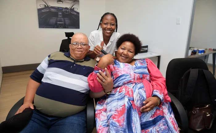 Boipelo Awuah is seen with father David Qhelo and mother Patricia Qhelo.