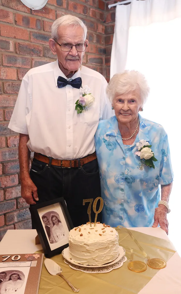 Andrew, 93, and Miems, 90, Prinsloo celebrate 70 years of marriage, a lifetime of love, respect, family, and cherished memories – proof that true love endures.