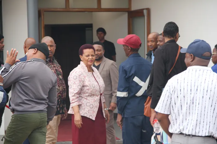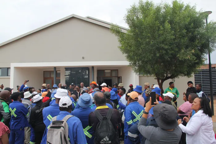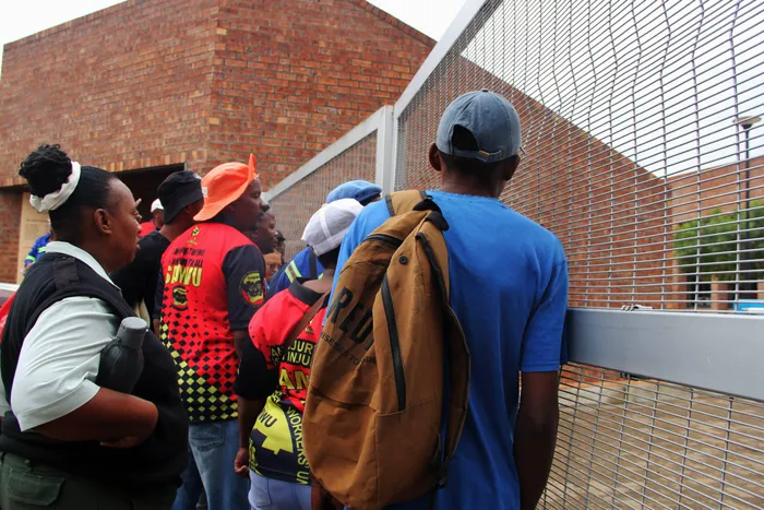 Samwu members enter the gates of Sol Plaatje University, demanding that Sol Plaatje Municipality Speaker Dipuo Peters and executive mayor Martha Bartlett address them over their outstanding appointment letters.