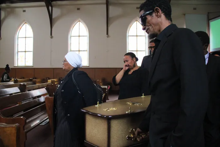 Esau Montzinger collected funds to give Collen Phillipus a dignified funeral at Trinity Methodist Church in Beaconsfield, while Reverend Soraya Douglas delivered words of comfort.