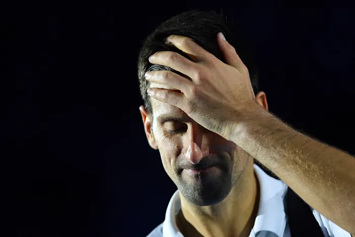 Serbia's Novak Djokovic reacts as he leaves the court after losing his semi-final match of the ATP Finals against Germany's Alexander Zverev at the Pala Alpitour venue in Turin on November 20, 2021. Picture: Marco BERTORELLO/AFP