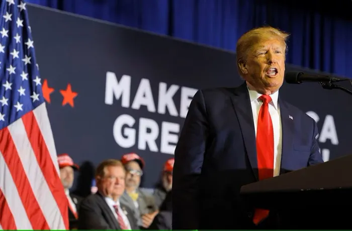 Former US President and Republican presidential candidate Donald Trump speaks at a campaign event in Manchester, New Hampshire. Picture: Reuters, Brian Snyder