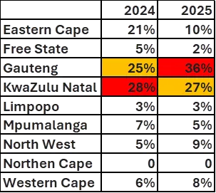 “In 2024, KwaZulu-Natal was the highest risk province, and Gauteng was in the second position. In 2025, the picture changed, with Gauteng in the highest position, followed by KwaZulu-Natal. Eastern Cape shows a decrease,” Clark said.