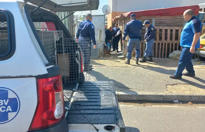 The Cape of Good Hope SPCA had to call SAPS and law enforcement to remove two “pit bull like” dogs in Bellville South from a man who threatened inspectors. File picture: Supplied