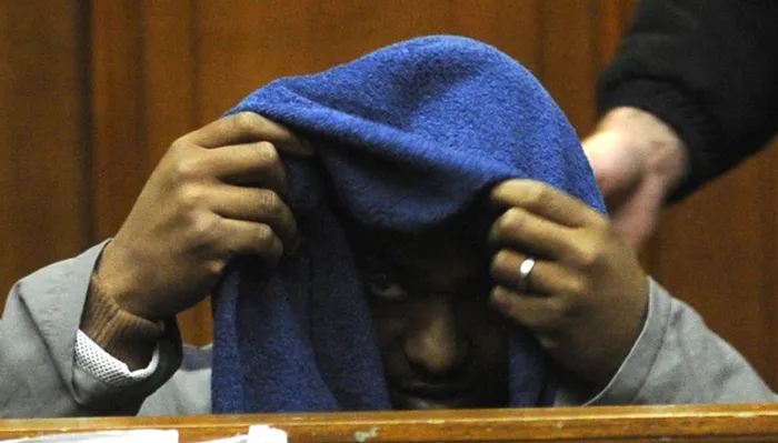 Facebook rapist Thabo Bester tries to hide his face as he is sentenced in the high court for murder. File picture: Brenton Geach, ANA