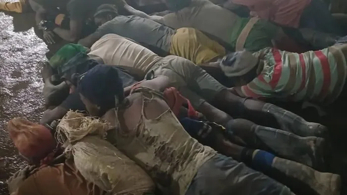 A total of 225 dehydrated illegal miners were arrested after they resurfaced from an underground mine in Orkney in the North West on Saturday. Picture: Supplied