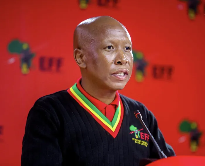 EFF leader Julius Malema speaks at a media briefing in Johannesburg, warning that ANC secretary-general Fikile Mbalula is “going for the kill” in the party’s succession race.