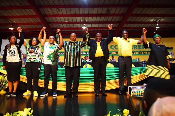ANC top officials - Maropene Ramokgopa, Nomvula Paula Mokonyane, Fikile Mbalula, Gwede Mantashe, Cyril Ramaphosa, Paul Mashatile and Gwen Ramokgopa. The former liberation movement said AfriForum is engaged “reckless, racist, and deliberate campaign” to distort the narrative.