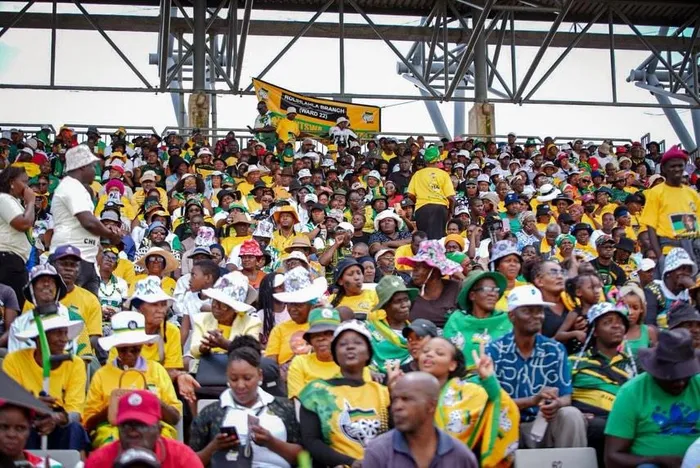 President Cyril Ramaphosa addressed party supporters at the Moruleng Stadium on Saturday.