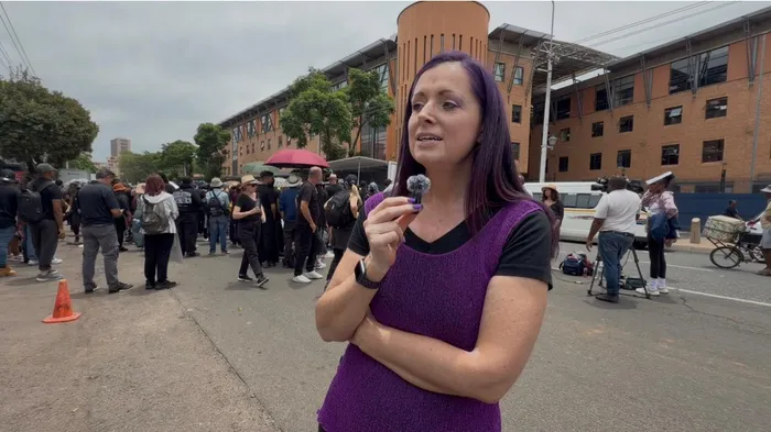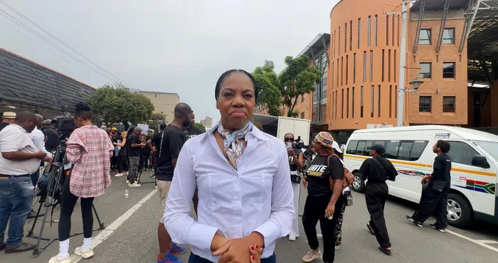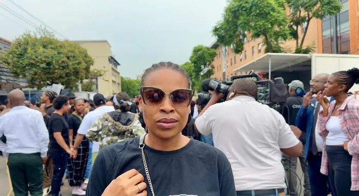 Actress Thuli Thabethe highlights the importance of the film industry for future generations during the protest.