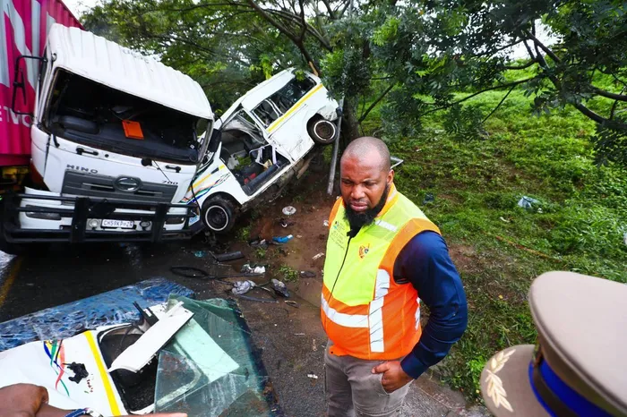Siboniso Duma, MEC for Transport and Human Settlements, at the scene of the fatal crash near Isipingo on Thursday morning