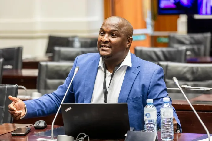 Former Crime Intelligence officer Pilasande Dotyeni giving testimony before the Ad Hoc Committee investigating allegations made by KwaZulu-Natal Police Commissioner Lieutenant-General Nhlanhla Mkhwanazi.