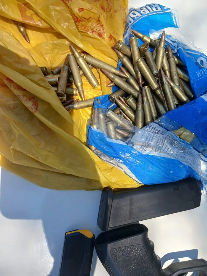 The suspects were found in possession of unlicensed firearms and ammunition.