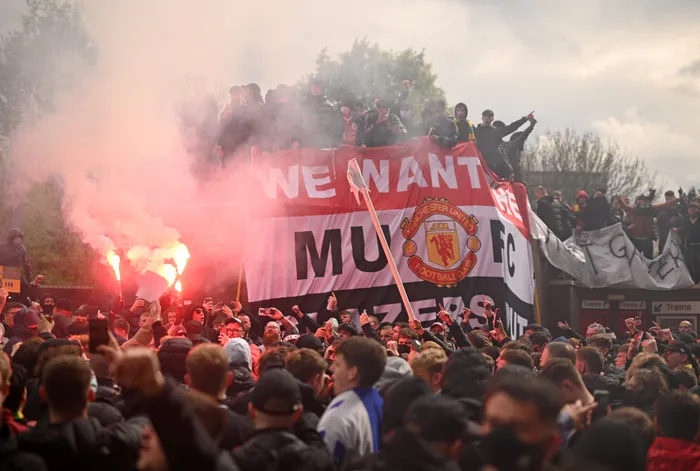 Supporters protest against Manchester United's owners, outside Old Trafford. Photo: Oli Scarff/AFP