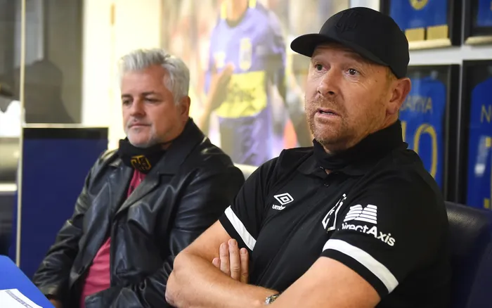 Cape Town City coach Eric Tinkler (right), next to club chairman John Comitis speaking about his plans for the team going forward. Picture: Phando Jikelo, African News Agency (ANA)