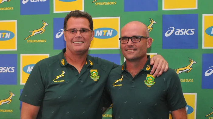 THE DREAM TEAM: Rassie Erasmus and Jacques Nienaber. Picture: Sydney Mahlangu/BackpagePix.