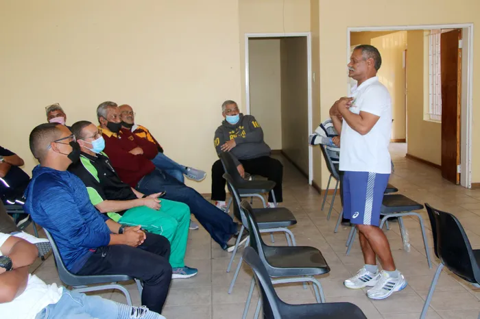 Former Springbok coach Pieter de Villiers addressed a Universal RFC sports seminar at the AR Abass Stadium on Thursday. Picture: Soraya Crowie