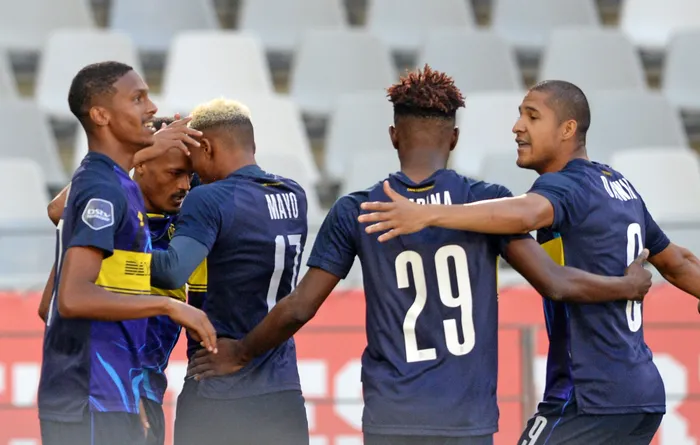 Cape Town City players celebrate a goal scored by Craig Martin during their DStv Premiership game against Sekhukhune United at Cape Town Stadium on Saturday Cape Town City players celebrate a goal scored by Craig Martin during their DStv Premiership game against Sekhukhune United at Cape Town Stadium on Saturday. Picture: Ryan Wilkisky, BackpagePix