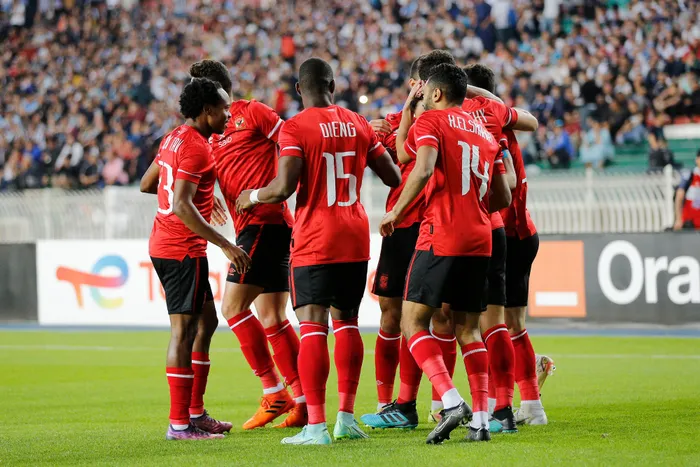 Ahmed Abdelkader of Al Ahly celebrates scoring with teammates during the CAF Champions League semi-final second Leg match against ES Setif. Picture: Ladjal Jafaar, BackpagePix