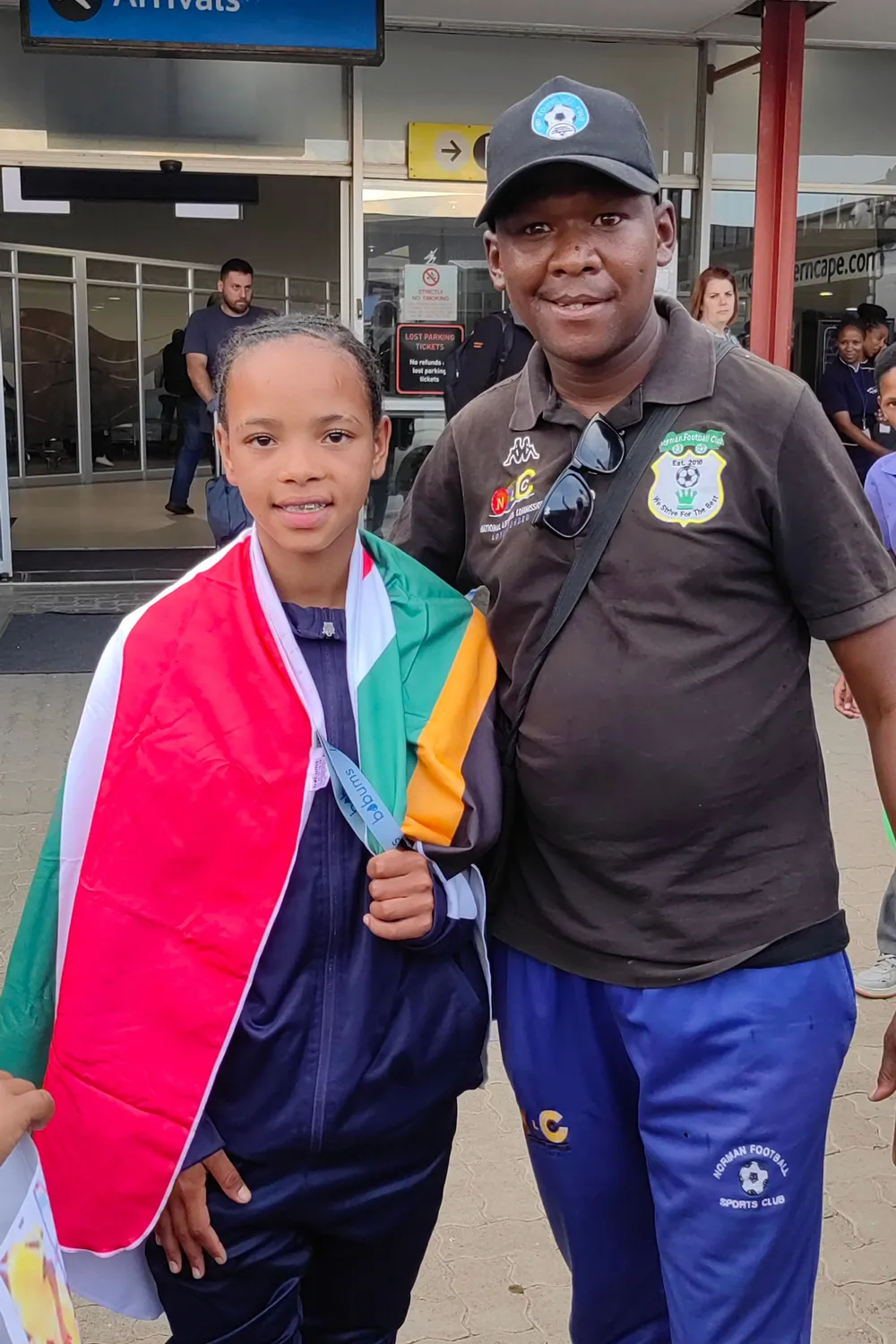 Norman Football Development Club, under the leadership of team manager Sydney Norman, recently extended heartfelt congratulations to one of the club’s brightest young stars, 14-year-old Leonay Kock. She was celebrated at the Kimberley Airport when she returned on Wednsday. Picture: Danie van der Lith