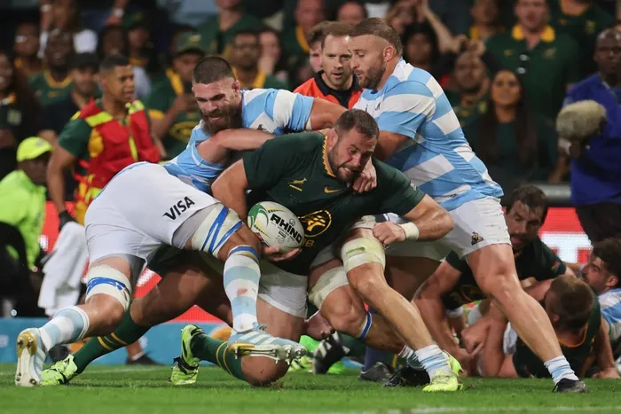 Springbok prop Thomas du Toit has opted to return to the Sharks in 2026, prioritising family life and a homecoming to Kings Park over a lucrative offer from Bordeaux. Photo: AFP