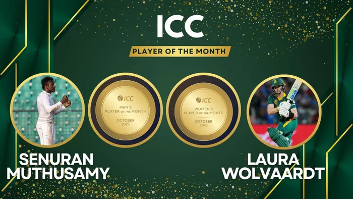 South African cricket had a double reason to celebrate on Wednesday after Proteas Women's captain Laura Wolvaardt and Proteas Men's allrounder Senuran Muthusamy were named ICC Players of the Month for October 2025.