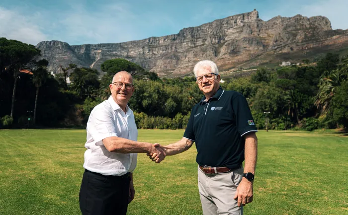 The 2026 Cape Town Cycle Tour, taking place on March 8, will mark its 48th edition with a major milestone as it joins the UCI Gran Fondo World Series, allowing riders to qualify for the World Championships in Japan. Pictured are Bob Verbeeck, CEO of Golazo, and Western Cape Premier Alan Winde.