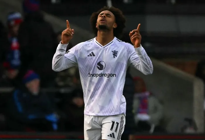 Manchester United's Dutch forward Joshua Zirkzee celebrates scoring the equalising goal during the English Premier League football match between Crystal Palace and Manchester United at Selhurst Park in south London on November 30, 2025. Picture: Glyn Kirk/AFP