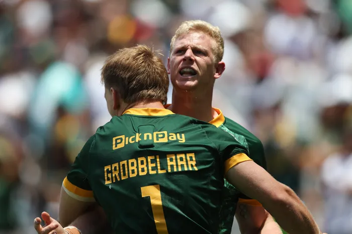 Christie Grobbelaar, seen here in action against France, scored a late try for the Blitzboks as they beat Argentina on Sunday to claim the Cape Town Sevens crown for the second year running.