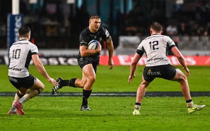 Andre Esterhuizen leads from the front during the Sharks’ 28–25 Champions Cup victory over Saracens at Kings Park. Photo: EPCR