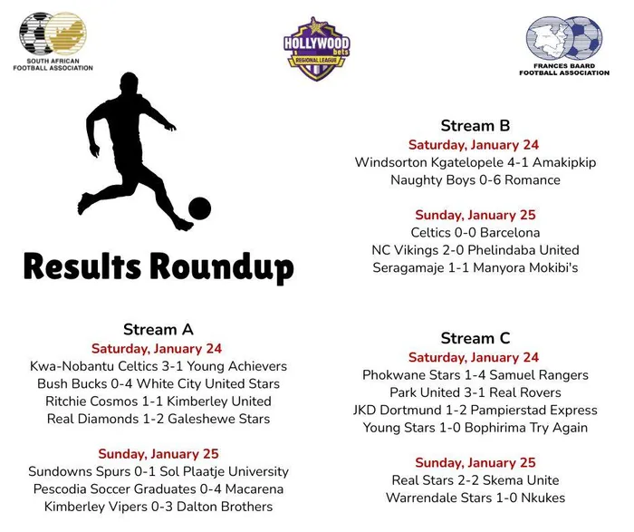 Results from the Safa Frances Baard Regional League games played over the weekend of January 24-25, 2026.