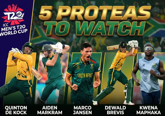 Five Proteas Players to Watch at the ICC Men's T20 World Cup.