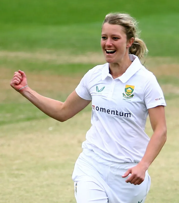 Anneke Bosch of South Africa celebrates the wicket of Sophia Dunkley of England during day two of their Test match in Taunton on Tuesday Anneke Bosch of South Africa celebrates the wicket of Sophia Dunkley of England during day two of their Test match in Taunton on Tuesday. Picture: Kieran McManus, Shutterstock, BackpagePix
